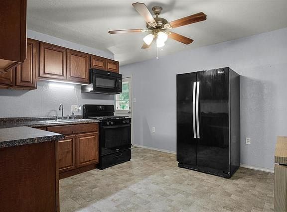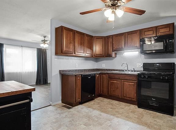 Welcome home to this updated, move-in ready 3-bedroom home. Split-bedroom layout creates comfortable spaces to spread out. Enjoy a roomy, updated kitchen with Whirlpool appliances including gas range, built-in microwave, dishwasher, and fridge. Huge main bedroom (so big it has two ceiling fans) perfect for an owner's suite or an additional family room. 2nd bedroom is also larger than normal, and has a spacious walk-in closet. Large laundry and mud room with built-in cabinets, and washer/dryer that stay. A large, flat backyard with privacy fence is complete with an incredible newer shed with a loft. Large vanity in the bathroom. With new windows in 2015, and seller offering $550 home warranty, this house is the perfect place to move in and relax.