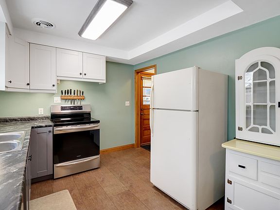 This charming 1950's 1 1/2 story cottage style home is filled with character and pride of ownership! The gleaming oak floors in the living room and 2 main floor bedrooms are in beautiful condition! The pocket door to the kitchen allows for separating spaces. The kitchen has luxury vinyl floors, under cabinet lighting and a newer electric induction stove. Upstairs is an expansive 3rd bedroom with fresh paint, carpeting and built in dresser drawers. The basement is finished with paneling and an egress window. This area has the potential for a 4th bedroom. The downstairs laundry room has an electric dryer, washing machine, laundry tub and built in shelving. The furnace has a humidifier. All the windows in the home (except bathroom) have been replaced. The roof is brand new Timberline architectural shingles. You will love the summer breezeway/porch between the house and attached one car garage. There is a service door from the garage to the large, extra wide lot with partial privacy fence, fire pit and lilac bushes. Additional features include gutters and concrete driveway with extra parking pad.