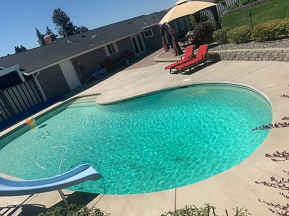 Three bedroom two bath home in a friendly neighborhood professionally landscaped and maintained large yard on .29 acre lot. Back yard is a private park-like setting, with an in-ground 8ft deep pool! Home will be shown by appointment please call 509-952-2040. The inground concrete pool is has a new solar cover and a winter safety cover is included. Large Off street parking and also has a convenient RV dump. This house has a two car garage and oversized two car carport. There is also a detached large storage shed. Nice lot at the end of a cul-de-sac very close within walking distance to Apple Valley Elementary school in a beautiful neighborhood nice and very safe. Kids walk to school (One block) and grocery stores within 4 to 5 minutes.