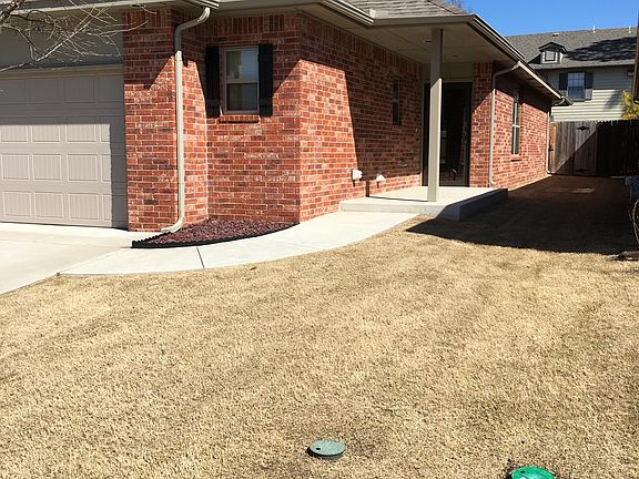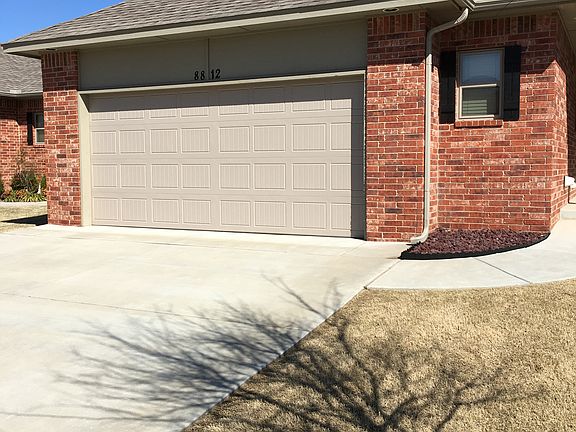Gated community new build in 2017 one owner with 9 FT ceilings and crown molding. Oversized 2 car garage with above ground safe room. All brick home was built to be handicapped accessible with 36-inch interior doors throughout. Master bath has a double vanity and a large walk in shower with a seat. Walk in closet includes an in-the-wall safe and built in storage cabinet. All cabinets are custom site-built oak. Kitchen has undercounter lighting, lighted pantry and granite counter tops. Gas logs in the fireplace turn on with wall switch. TV (65 inch) hung over fireplace stays! Covered patio & 6-foot privacy fence in back. In-ground sprinkler system with yard mowed and edged by HOA. Includes front-load LG steam washer and dryer on pedestals, garage door lift and whole house wired security system. This energy efficient Clint King custom build has been upgraded with R-50 attic insulation. Gas & electric together average $95 per month. Santa Fe Village has easy access to Tinker & metro.