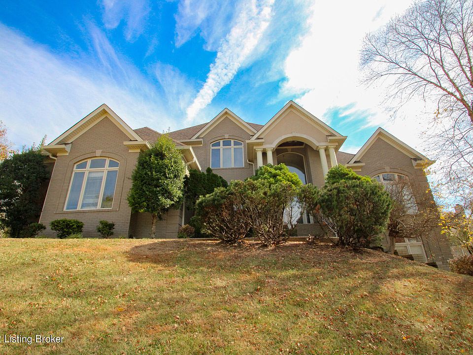 BEAUTIFUL HOME! Located on one of the largest lots in the subdivision, this home is a perfect example of luxury. Enter through the spacious 2-story foyer with hardwood flooring that leads to a sizable great room which boasts large windows & a gas fireplace. The gourmet kitchen is complete w/custom cabinetry, breakfast bar, & granite counter tops, plus both a regular oven & convection double oven. A breakfast room with gas fireplace & ample natural light completes the kitchen area. The first-floor primary bedroom w/balcony & en-suite is ''to die for,'' with an oversized shower, double sink vanity, & column-accented whirlpool tub! The second floor features 3 bedrooms & a full bath. The large finished walkout basement features a family room, kitchenette, game room, 5th bedroom & full bath. Owner is a licensed real estate agent in the state of KY.