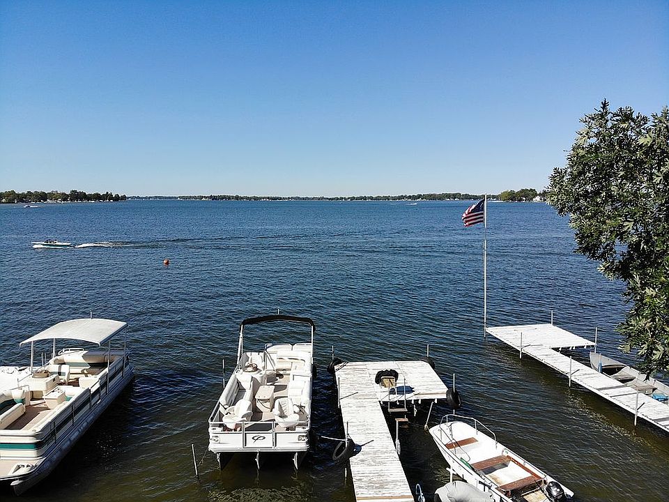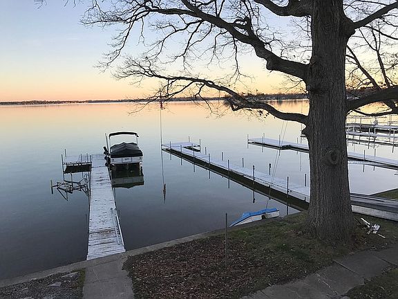Completely rebuilt 2017. Four bedroom lake front home with great views of the lake. Attached garage and sidewalk in front. Private beach in front of the seawall. Stone fireplace in living room. Please note Street view is outdated we asphalted driveway. Brand new dock and good 3000 lbs boat lift included. We entertain any offer with proof of fund.