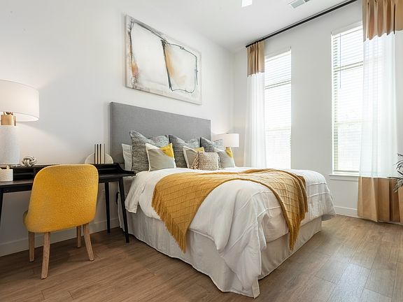 - Exterior features: Barbecue, Bicycle storage, Built-in Desks*, EV Charging, Glass Enclosed Showers & Dual Vanities*, Grey Cabinets, High-speed Internet Ready, Mud Benches*, Package Receiving, Pet Park, Private Patios, Balconies & Yards*, Quartz Countertops, Smart Thermostats, Stainless-Steel Kitchen Appliances, TV Lounge, Two color schemes to choose from*, White Cabinets, Wood-style flooring