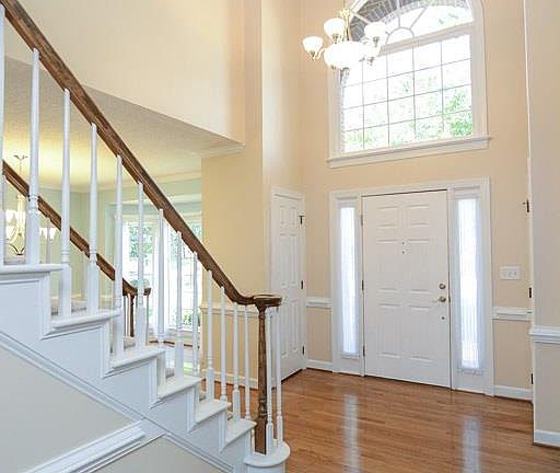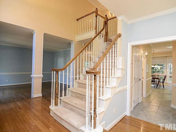 Move-in Ready Brick Front North Raleigh Charmer on the most popular culd e sac in Durant Trails. 4bdrm 2.5 bath 2 Story Grand Foyer & Open Floor Plan. Master Suite w/spa bath, double vanity & Large tub & huge closet. Update kitchen w/deluxe pantry, Granite, Breakfast Bar, Stainless Appliances, Tile Backsplash. Dining, living, family and Brkfst room. Fenced Yard w/Shed. Large deck for entertaining. Hardwoods & Ceramic. Gas Furnace, WH and Fireplace. Com. Pool & Tennis, Near Durant Nature Park & Greenway.