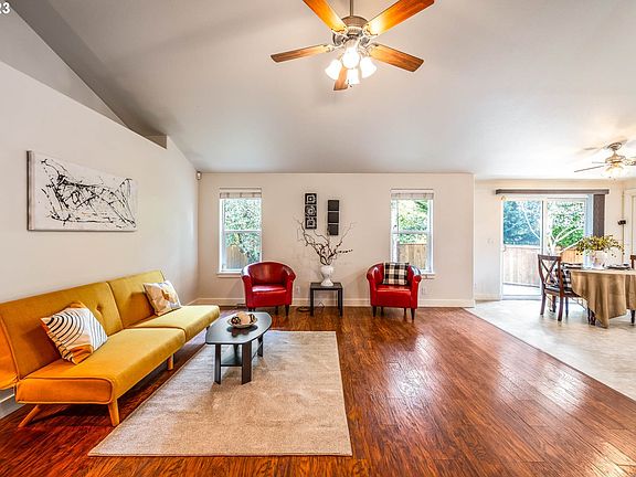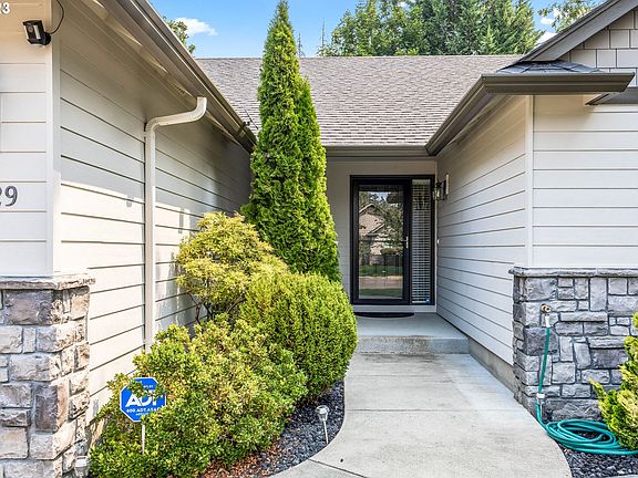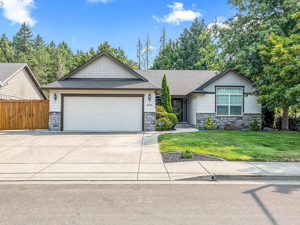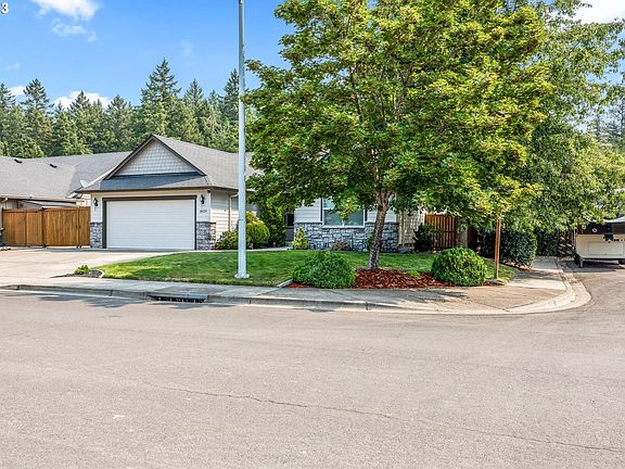 Sought after Veneta neighborhood! Country living and city close, the best of both worlds! Updated 4 bedroom, 2 bath home on a quiet corner lot backing up to a beautiful grove of trees. No neighbor behind you or beside you on one side, unless you count the many birds and squirrels! Freshly painted interior and exterior with a striking contemporary accent wall in the living room. Gorgeous, leathered granite kitchen countertops and eating bar. Stainless appliances, refrigerator which stays with the sale, beautiful custom Cherry wood kitchen cabinets with soft close hinges. Spacious pantry and new flooring. Fantastic open floor plan with great separation of space. The primary bedroom and bath, with a large walk-in closet, is on the opposite side of the house than the other three bedrooms and main bathroom. The 4th bedroom would make a perfect home office with lots of natural light and glass French door. Come home and relax on the peaceful extended patio, enjoying the shade from the afternoon sun and the mature landscaping. Newer cedar garden beds are placed for lots of sun and easy access. Perfect for growing flowers for your home and vegetables for the dinner table! There is a backyard shed with plenty of storage space for lawn tools and more. Front and rear sprinkler system make for easy maintenance too. This home also has plenty of RV parking, hook-up and even has a RV drain! Meticulously maintained by the original owner. This well-built Bruce Weichert house would make a wonderful new home! Home warranty provided by seller.