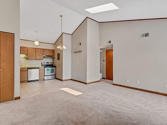 Enter through your top floor landing. As you walk in you are greeted by a large open space with Vaulted Ceilings and a large sliding glass door leading to your own private balcony. The balcony offers amazing views of Denver, and bonus storage in the outdoor closet. Make your self at home next to the fireplace as you sit down to you favorite past time. Plenty of space for living room furniture and dining room table. The Kitchen offers stainless steel appliances, plenty of counter space, and ample storage for all your cooking needs. Head down the hallway into the primary suite and feel at home as the vaulted ceilings continue into your room. Wake up every morning to the Denver Skyline as the Balcony connects directly to the Primary Suite via its own sliding glass door. The second bedroom offers more than enough space to be used as either a sleeping area, or a large office space. The main bathroom offers a large vanity with sink and stone counters, large shower tub, and oversized mirror to make that final check before heading out.Rest Easy knowing that you will have your own designated parking. Never worry about the hassle of driving around to find parking again. Enjoy all the amenities the community has to offer. Summer time sunshine will have you lounging by the pool, or taking long walks around the neighborhood. Community club house has activities and sitting areas inside. A short walk away from half a dozen ponds, this neighborhood offer everything one can think of. Close to shopping and I-76 and I-25. 20 Minutes to DIA. 20 Minutes to Downtown Denver. Come and see this amazing home before it it gone.