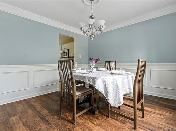 Immaculate home in cul-de-sac with professional landscaping in established community. Open and airy 2-story Great Room has masonry gas log fireplace that opens to kitchen. Bright Kitchen includes 16" square tile floor, white cabinets, granite, stainless appliances (including gas range) and tile backsplash! Heavy crown molding and wainscoting, hardwoods throughout most of the downstairs, neutral colors through out and walk-in attic storage. Large Master Bedroom has a luxury Master Bath with a garden tub & separate shower. HVAC installed in 2016, Roof installed 2017. Neighborhood has amazing pool & playground. Fenced-in yard overlooks mature trees and shrubs. Close to new prosperity village shops, Starbucks, I-485 / 77 and more...