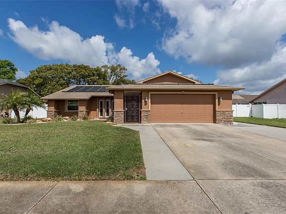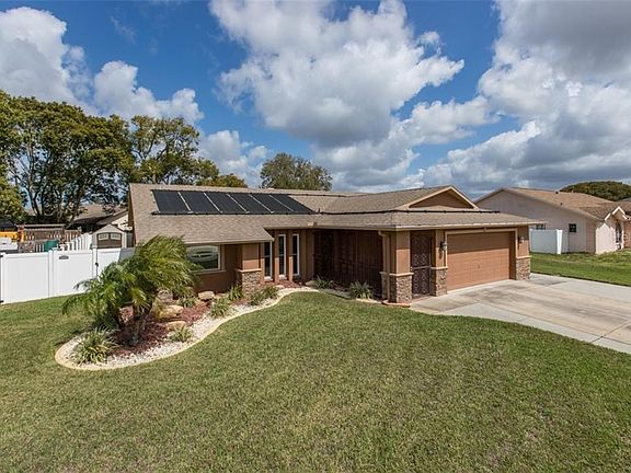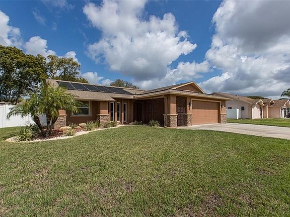 SPECTACULAR DOESN'T SAY ENOUGH ABOUT THIS 3/2/2 POOL HOME IN THE TRINITY AREA! YOU CAN REAP THE BENEFITS OF THE $100K IN UPGRADES THE SELLER HAS PUT INTO THIS VERY SPECIAL HOME, EVERYTHING IS VERY HIGH END! NOT ONE INCH OF SPACE IN OR OUT HAS BEEN OVERLOOKED! THE POOL INSTALLED IN 2015, IS SURROUNDED BY PAVERS AND FEATURES A VINYL PRIVACY FENCE HAS 2 DECK PATIO AREAS, AUTO SWEEP & ALSO HAS SOLAR HEAT PANELS FOR YEAR ROUND USE! ALL THE WINDOWS AND DOOR WERE OF COURSE REPLACED! CATHEDRAL CEILINGS SOAR OVER THE MAIN ROOMS ACCENTED BY ELEGANT CROWN MOLDING. A CUSTOM STACK STONE WALL ADDS ARCHITECTURAL DETAIL. THE SPLIT FLOOR PLAN GIVES MAXIMUM PRIVACY TO THE FABULOUS MASTER SUITE. ENJOY A NICE WALK IN CLOSET AND BEAUTIFULLY REMODELED BATH! BEDROOMS 2 & 3 HAVE ARE A GENEROUS SIZE WITH PLENTY OF CLOSET SPACE AND THE BATH ADJACENT TO THEM BOTH, ALSO TOTALLY REMODELED. YOU WILL FALL IN LOVE WITH THIS HIGH END KITCHEN! TONS OF COUNTER TOP WORK SPACED TOPPED BY GRANITE AND ALL THE GLEAMING STAINLESS APPLIANCES ARE INCLUDED! THE BREAKFAST COUNTER BAR OPENS TO THE FAMILY ROOM. A HUGE FAMILY PLAY ROOM HAS BEEN ADDED AND FEATURES A FULL SIZE POOL TABLE AND A LARGE SPA, OUTFITTED WITH A BIG FLAT SCREEN TV ALL OVERLOOKING THE AMAZING POOL AREA! THE HEATED EXTRA DEEP POOL HAS AN IN WATER SUN DECK FITTED FOR AN UMBRELLA. CATCH THE BREEZES FROM THE SCREENED PORCH AREA IT HAS A ATTRACTIVE TEXTURED FLOOR. IT SITS BETWEEN THE FLORIDA ROOM AND THE ULTIMATE IN BBQ-ING A STONE AND STUCCO CABANA DEDICATED FR OUTDOOR COOKING! WOW! THERE IS ALSO A STORAGE SHED FOR ALL THE POOL TOYS! BIG 2 CAR GARAGE, NEW H20 HEATER, NEWER WASHER & DRYER! THIS IS AN AMAZING HOME AT A GREAT PRICE AND WILL GO FAST! HURRY TO THIS ONE HESITATE....AND YOU WIL BE TOO LATE!!!