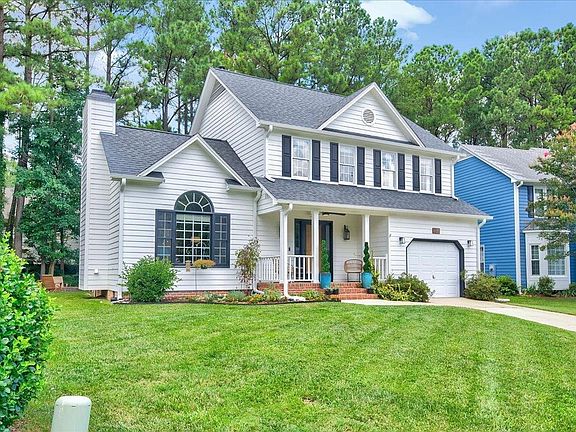 This little cutie is ready for her next chapter! Nestled in a quiet cul de sac, great natural sunlight throughout. Two coats of exterior paint (2020), black trim and new gutters (2020) set her apart! Updated lighting and ceiling fans, updated appliances, Mohawk waterproof flooring throughout downstairs (2022), updated mantle (2021), toilets (2018), painted deck, firepit area in backyard, updated cabinet hardware, too many things to name! Refrigerator conveys. Swingset and bistro lights convey. Walking distance to greenway and Durant Nature Preserve. Conveniently located in N. Raleigh. Wake County schools. Short 15 min. drive to N. Hills shopping and restaurants. Just a quick commute to downtown Raleigh and RDU Airport. Bring your buyers before it's snatched up!