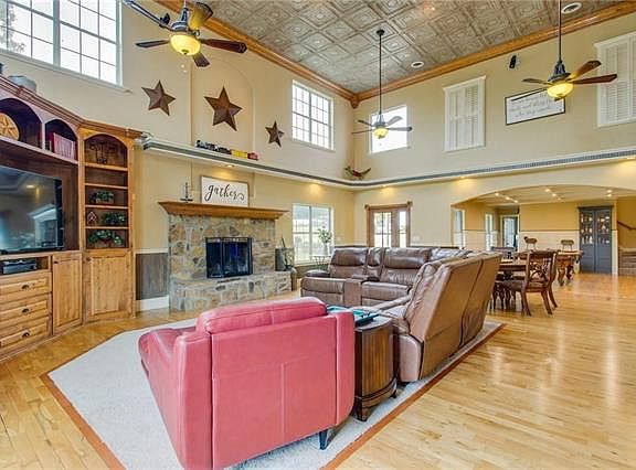 This beautiful country home w soaring ceilings in the in the Family Room boasts 2 downstairs Master Suites with two additional bedrooms,office, 2 walk in storage rooms and a media room upstairs. It also has a large utility room with sink, built ins, room for an extra freezer. The property comes equipped for a small trade business with a 30 x 70 workshop wired for 220 amps, 2 roll up doors, fully equipped guest Qrtrs w separate entrance is 13 x 30 w full kitchen and laundry. Additional covered parking includes RV or boat parking beside workshop.