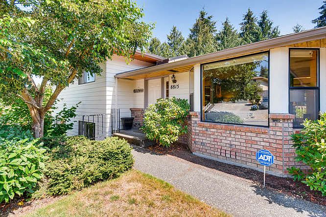 You will love this custom-built home on a private street in an excellent neighborhood. Quiet, yet close to everything. Walking distance to public elementary and high schools and K-8 private school, as well as theaters, shopping, restaurants and coffee shops. Only 3 miles to Boeing. Enjoy the huge, park-like yard (1/3 acre) bordered by a forested green belt and the Interurban Trail. The large living room features a bayed window and beautifully finished wood burning fireplace. The spacious kitchen includes ample work space and cabinetry, pantry, built in desk, ceramic tile floor, instant hot water tap, stainless appliances & very large adjacent eating space with french doors to one of the two private decks. In addition to the large Master Suite and three additional bedrooms, this home also features a big family room with second deck, laundry room, third bathroom and office (or 5th bedroom).