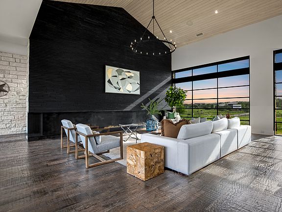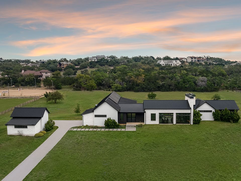 Nestled in the serene and scenic Texas Hill Country, this remarkable equestrian estate showcases a stunning fusion of contemporary and classic design elements, expertly crafted by the renowned Forge Craft Architecture. The interior of this magnificent retreat is an exquisite example of contemporary style, with its sleek bleached-oak vaulted ceilings, hand-scraped red oak floors, and a massive steel-surrounded bio-ethanol fireplace. The use of live-edge pecan accents and rift-sawn oak cabinetry provides a tasteful nod to the traditional. The home is designed to offer unobstructed views of the breathtaking natural surroundings, with floor-to-ceiling windows that overlook the lush rolling hills, equestrian facilities, and vibrant wildflowers. Open and spacious, with a flowing design that is ideal for grand-scale entertaining or quiet relaxation. The gourmet kitchen is equipped with state-of-the-art appliances, while the outdoor living space features a sleek pool, outdoor kitchen, and spa directly off the primary, that provides the perfect setting for relaxation and tranquility. The luxurious primary suite, located on it's own side of the house, offers a private and serene retreat, complete with a spa-like master bath that boasts a freestanding tub with a backlit quartzite feature wall and walk-through shower behind, as well as a separate steam shower. In the other wing of the home, an additional spacious living room with beautiful built-ins and vaulted ceilings, an executive office, three large en-suite bedrooms, that each offer stunning views. An attached two car garage, as well as a detached two car garage, provides for plenty of room for your car collection and additional storage. This exceptional equestrian estate offers the perfect balance of contemporary style and timeless elegance, providing a truly unique and unforgettable living experience.