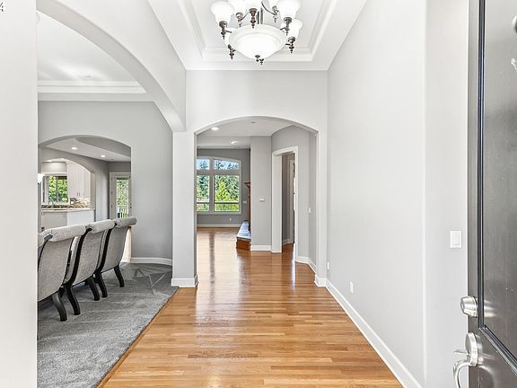 This enchanting home Built by Renaissance Homes, seamlessly marries timeless elegance with modern comforts in this 3-bedroom 2.1 day-ranch perfect for multi-generational living. A testament to meticulous craftsmanship, its interior boasts graceful curved walls that guide you through its spacious layout. Adorned with exquisite woodwork, every corner exudes warmth and sophistication.Step into the heart of the home where the semi-great room effect comes into sight, a newly remodeled kitchen awaits, featuring top-of-the-line appliances, sleek quartz countertops, large pantry & abundant storage, perfect for culinary enthusiasts and gatherings alike. The main level living welcomes you with freshly painted walls and plush newer carpeting, the lower-level features newly painted walls, laminate flooring with a wet bar & theater set up plus a fireplace and high ceilings inviting relaxation and leisure.Outside, a sprawling deck beckons, offering a serene perch overlooking a seasonal panorama, ideal for savoring morning coffee or hosting al fresco dinners under the stars. An indulgent swim spa awaits, providing year-round aquatic enjoyment and relaxation.Embrace the outdoors with flair, as the property boasts great outdoor entertaining areas, perfect for hosting guests or simply basking in the tranquility of nature's embrace. Whether lounging on the deck, enjoying the swim spa, enjoying the neighborhood community pool, or entertaining under the open sky, this Renaissance Home promises a lifestyle of refined comfort and timeless beauty.