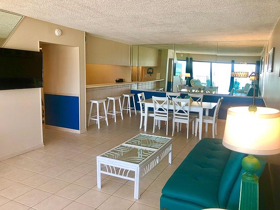 Beachfront condo with direct beach access and gulf front pool. WiFi- internet, premium cable, and water included! This is a small community condominium, it has one large bedroom with two queen beds and two bathrooms. Full kitchen, dining and living space overlook the gulf. Large 7th floor private balcony, with amazing Gulf views. Great location food, drinks, and attractions. Close to grocery and gas. The condo is fully furnished and equipped for full time living. Option to remove furniture available upon request with long term lease. New sliding door and windows installed October 2023 $2750 is for 6-12 month lease. Please inquire for monthly leases. Parking on-site $40/month No smoking or pets.