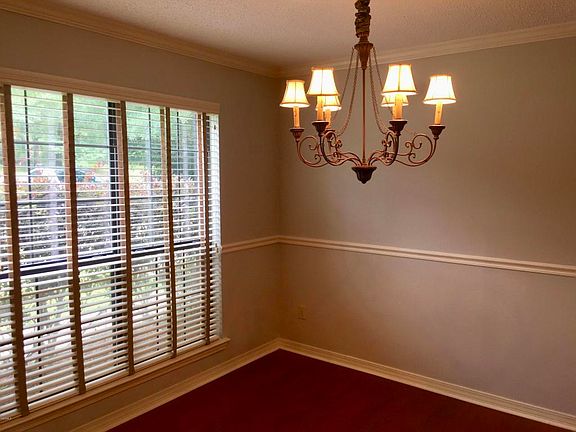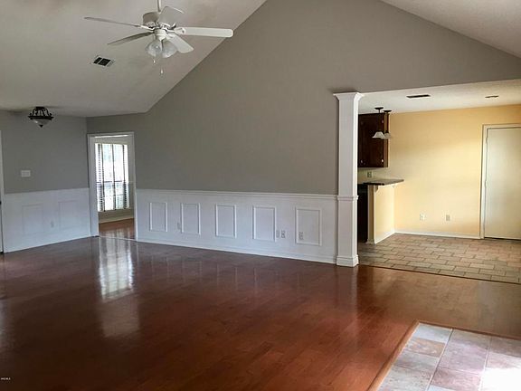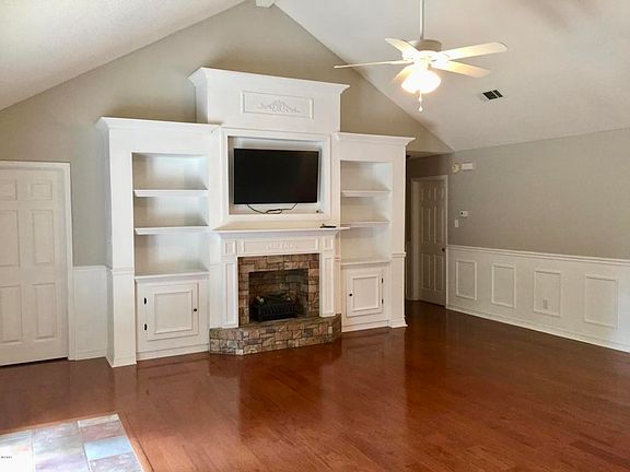 Spacious family home with plenty of room for entertaining. Large great room with vaulted ceiling, built-in bookshelves and flat screen tv. Wood flooring throughout foyer/great room and french doors to large back deck. Kitchen has stainless appliances, including refrigerator. Breakfast bar. Dining area. Formal dining room with wood flooring and custom blinds. Split floorpan. Main bedroom has wood flooring and large walk in closet. Guest bedrooms also have wood floors and blinds on windows. Backyard is large and completely fenced. Huge deck. More!