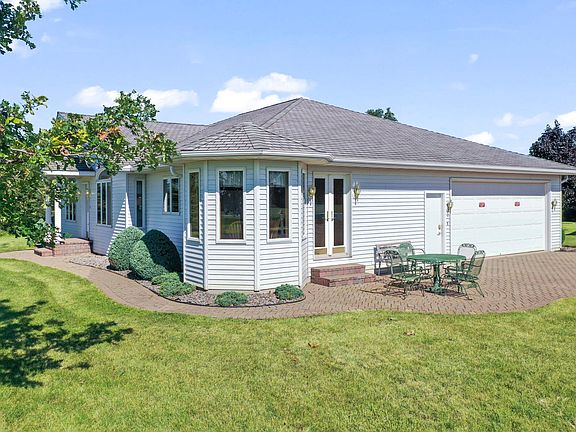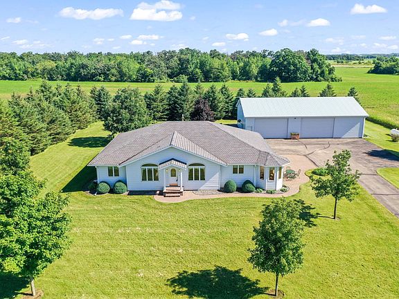 Discover the serenity of country living with this meticulously kept 3-bedroom, 4-bath ranch on picturesque land. This home features stunning oak woodwork throughout, 2 offices, all of the bedrooms on main floor, master suite with jetted tub and seperate shower, large eat in kitchen with view of the countryside, and a separate dining room. Lower level offers a finished 3/4 bath, egress window, large storage area and boasts over 2,000 square feet. Hobbyists will enjoy a 40x60 heated shop, where there is enough space to hold at least 8 cars or more!