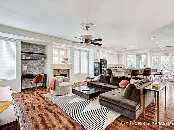 Step into this fully furnished, turn-key luxury rental located in the exclusive, guard-gated community of Corta Bella in Summerlin, situated just moments from The Meadows private school. This recently upgraded 2-story home features numerous high-end updates, including new granite countertops, updated fireplace surrounds, and fresh carpeting in the living and den areas, as well as new kitchen appliances. You'll be welcomed by a grand formal living and dining room with 19-foot vaulted ceilings and an elegant fireplace, leading into a spacious great room and kitchen with a breakfast bar.