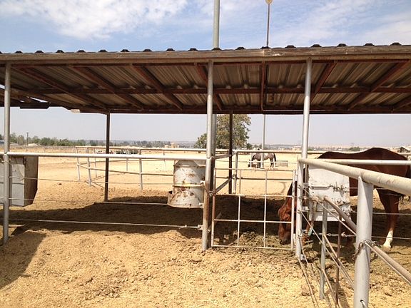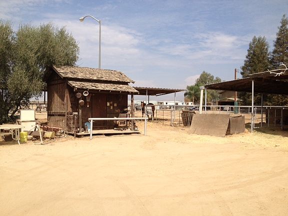 Horse property at a great price (Appraisal on file) w M/H 1325 sq ft on 2.67 Acres w/ 2 bdrms, 2 baths (one w/ a roll-in handicap shower) indoor laundry, kitchen w updated cook top & stove & family room w wood burning stove. There is an outdoor storage area previously used as an office plus a secondary living qtrs with just room & closet (perfect for teenager). Lighted round pens (w street lights), 2 pastures w sprinklers, covered stalls, tack & feed storage bldgs plus a cowboy bunk house.