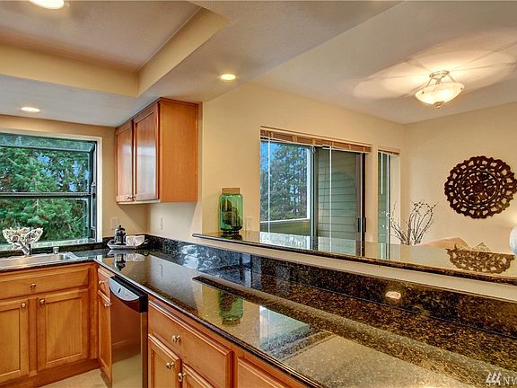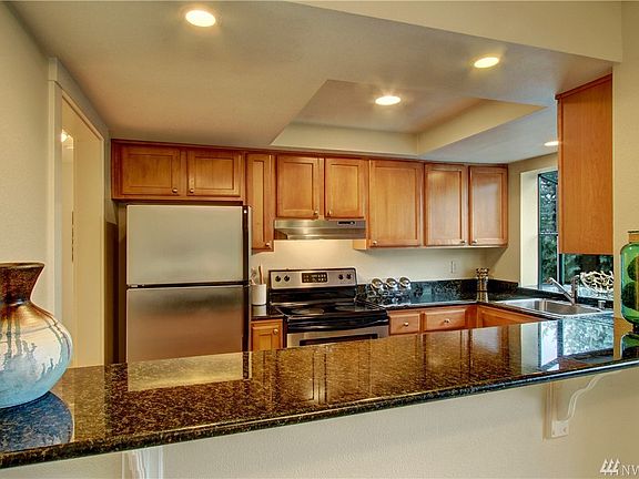 Wonderful top floor corner unit in Greenlake Gables. Light & bright, this home features a large kitchen with stainless appliances, garden window & breakfast bar. Great open floor plan, deck with views, wood burning fireplace, new paint, secure covered parking, travertine bathroom tile & W/D. Easy commuting options, strong HOA, no special assessments, building is FHA approved, pre-inspection available. Close to Green Lake & Greenwood neighborhood(s) with great restaurants, coffee shops & more!