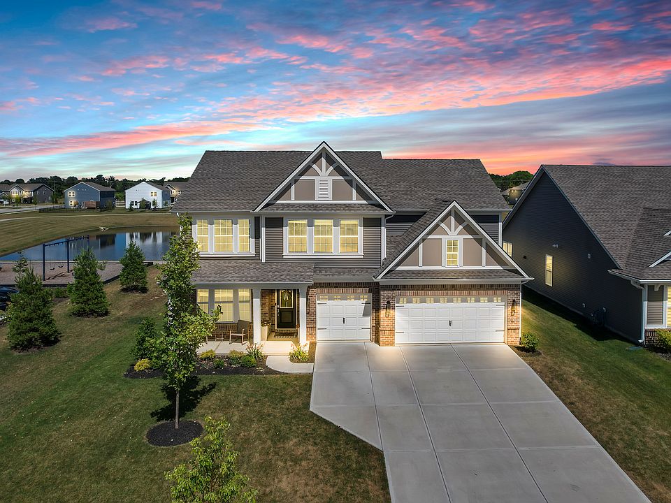 Why wait for new when you can have this beautiful Everett plan now? Gorgeous designer touches welcome you into this ideal 2800sqft home with 4 bedrooms, 2.5 bathrooms and 3 garage stalls. This amazing floorplan features a stunning island kitchen, SS appliances with upgraded countertops and 42" cabinetry along with a large walk-in pantry. You can't miss the separate office or the large living room with a fireplace, custom built-ins and floating shelves. Upstairs, find sanctuary in 4 bedrooms and a versatile loft offering private retreats and cozy gathering areas. Retreat to the luxurious owner's suite featuring a deluxe bath with a large shower, dual sink vanity, and walk-in closet complete with custom shelving. Outside, relax on the concrete patio with a firepit, surrounded by a newer fence overlooking tranquil water views. Located near Hamilton Town Center for shopping and dining convenience, with easy access to I-69. Don't miss out on this opportunity-schedule your tour today!