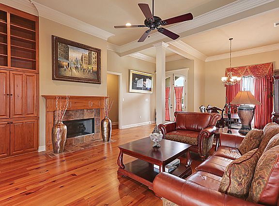 Another beauty in Woodridge. Soaring 12' ceilings in family and dining room. Full of windows with great views of backyard. Antique heart of pine flooring in family, dining, and master bedroom. Kitchen has cathedral ceilings, large island with wrap around eating bar and cypress cabinetry. Home is also pre wired for surround sound and has security cameras. Custom copper gas light with true stucco. You don't want to miss living near schools, interstates, and New Woman's Hospital!