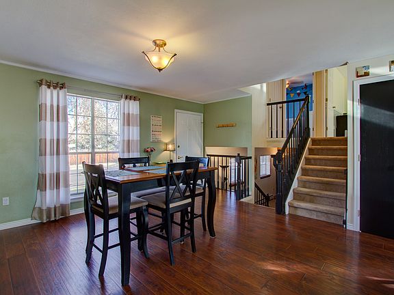 This turnkey home has all the updates & all the work has been done for you! The open concept floor plan & the beautiful dark flooring makes the space feel warm, inviting & it's a great space to entertain guests. The kitchen comes with stainless steal Frigidaire appliances, a kitchen island, granite counter tops, glass tile backsplash & a bonus wine refrigerator. Take the stairs down to the lower level & find a cozy living room that has exposed brick, a wood burning fireplace,& a nice area to set up your flatscreen TV. There is brand new carpet throughout & the 3rd bedroom has it's own private full bath on the lower level. Walk upstairs to the top level & find 2 more bedrooms with walk-in closets, & one full bathroom.The exterior offers a newly sanded & stained deck that overlooks a huge backyard with a raised garden bed, a drip system, built in sprinkler system, and solar panels to help keep costs low! SolarCity maintains them & you will have your own representative! The 2 car garage has Epoxy floor, built in cabinets and a tool bench. This home has it all! Stay tuned for Open houses on Friday and Saturday this week!
