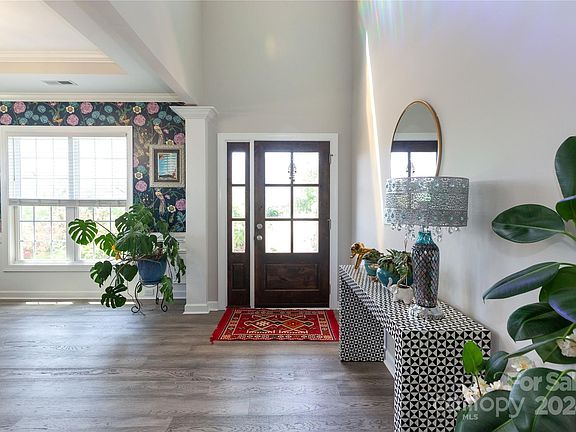 Beautiful, open floor plan, gourmet kitchen and lots of windows and light; this home has it all. The primary suite is large, with a wall of windows, large walk-in closet, and beautiful bathroom. Finishes include a separate shower and tub and double sinks, making this primary a place to relax. Gourmet kitchen with large quartz island, gas cooktop, double ovens, a butler's pantry area and an appliance hood ensures that all will gather in the kitchen when you entertain. Laundry room is on the main floor and there is also a separate dining room being used as an office. Upstairs you will find 3 more bedrooms and 2 full baths, a walk-in, unfinished storage room and a large bonus/family room to use as you wish. There is pre-wire for sound in several rooms. The yard is large and flat with a covered patio and an irrigation system. All of this in the desirable neighborhood of Summerwood with walking trails, ponds, cabana, pool, and playground. Easy access to 485 and downtown Mint Hill.