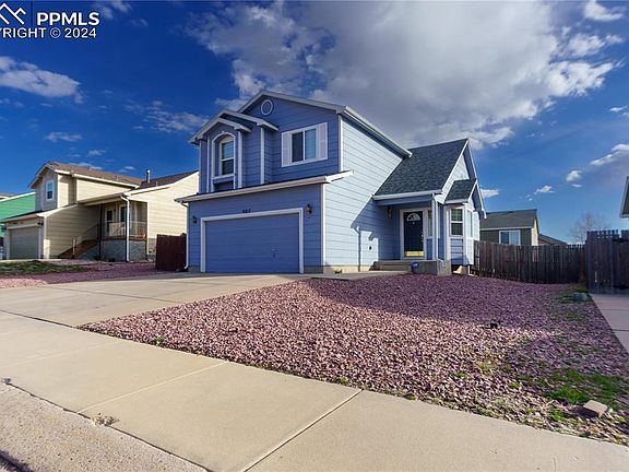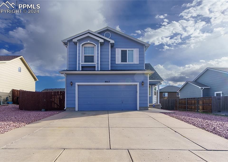 Welcome home to this spacious 3 bedroom 2.5 bath home. Xeriscaping throughout the front of the house and portions of the rear make upkeep on this home easy. Only minutes away from Fort Carson, shopping, and the local elementary school, the location of this home can't be beat. This community is well loved as can be seen from the neighbors in the area who take meticulous care of their properties. Entering this home, there is hidden space under an under window bench. The home opens up with vaulted ceilings and a large family room complete with large windows and a gas fireplace. As you turn the corner, the family room continues to a dining area and the kitchen complete with pantry space and the main level half bath. Going through the door of the walkout to the backyard, the xeriscaping continues with a grassy area left for the comfort of your pets. Heading upstairs, the primary bedroom is massive with vaulted ceilings and an en suite primary bathroom complete with a jacuzzi soaking tub, stand alone shower, and walk in closet. Two more spacious bedrooms share a common full bath on the upper level. The finishing touch is the upper level laundry space making laundry a snap. Heading down into the basement you will find an unfinished basement that is waiting for your finishing touches to include a bathroom rough in. The 2 car garage has all the space for your cars, toys, or tools! Come take a look at this beautiful home before it is off the market!