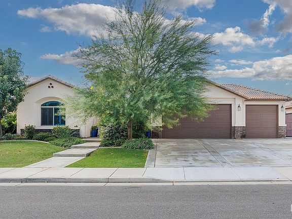 Welcome to your semi-custom, split wing dream home in Quail Run. The kitchen boasts a large island with seating, SS appliances, double ovens, soft-close cabinets, tons of storage and a walk-in pantry. The wood-look plank tile flooring in all the main areas, adds a touch of elegance and warmth. Custom paint & plantation shutters add style to every corner, while the laundry room with a sink offers practicality & convenience. Step outside into your own private oasis, where there are so many entertainment possibilities. The beautifully landscaped back yard stuns with its custom arbor, inviting stone fire pit, & a fenced garden complete with raised beds. Additionally, the side yard boasts plenty of added concrete and RV parking with full hookups. The 3-car drive-through garage, offers the perfect solution for an extra vehicle or for off-road toys. It also comes equipped with OWNED SOLAR, providing energy to power both the home & any future pool. Don't wait, your forever home awaits!