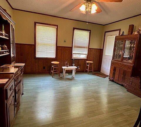 Located across from the Port in Crandall is this 3 BR/2 Bth home on 1 acre of land. There are 2 out buildings on the property plus 2 septic tanks; one on each side of the house. Features include: one level home, fenced backyard, 3+ car carport, level land and a mountain view. The Dining Room Subfloor needs some work as well as the concrete slab for the storage room on the back of the carport.
