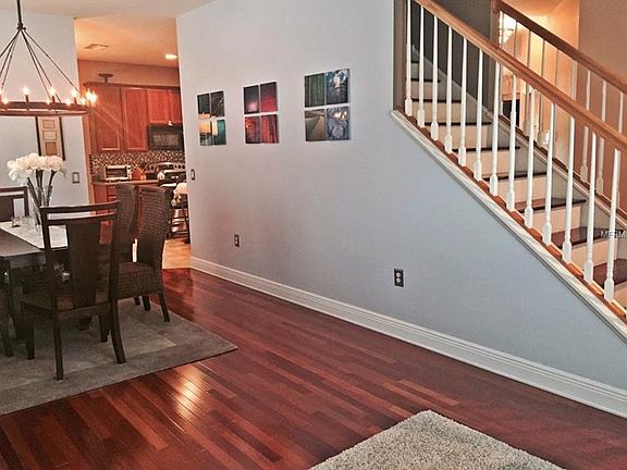Stunning 3 bedroom 2 1/2 bath Pool home with 3 car garage, and Bonus loft with an easy optional 4th bedroom conversion possible. This two story home situated on a lush CONSERVATION LOT with POND VIEWS boast over 2500 square feet of UPGRADED living space and lots of windows to keep the space bright and inviting. Beautiful BELLAWOOD cherry floors complement the living areas while neutral carpet is showcased in the bedrooms. The open eat-in kitchen features UPGRADED 42" cabinets, GE profile stainless steel appliances and tile backsplashes. The bright family room has a wonderful floor to ceiling fireplace, and triple glass sliders leading out to the brick paver screened in lanai. Completing this outside oasis is a waterfall pool and jetted hot tub. This home offers the perfect place to entertain family and friends! Upstairs, the expansive master bedroom boast a huge sitting area and large walk-in closet. The luxurious en suite bath has double sinks and a separate garden tub. The 2 additional bedrooms are bright and comfortable also. The BONUS open loft area is perfect for relaxing OR converting to a 4th bedroom. As an additional bonus , in 2014, 2 new A/C units (first and second floor) were installed and complete exterior painting was done. Nestled on a quiet conservation lot, enjoy the River Chase community and its LOW HOA FEES! This neighborhood is conveniently located close to West Park Village in Westchase and minutes from Downtown Tampa and the airport. And the Gulf Beaches are close too!!