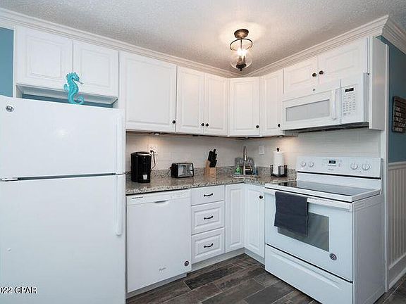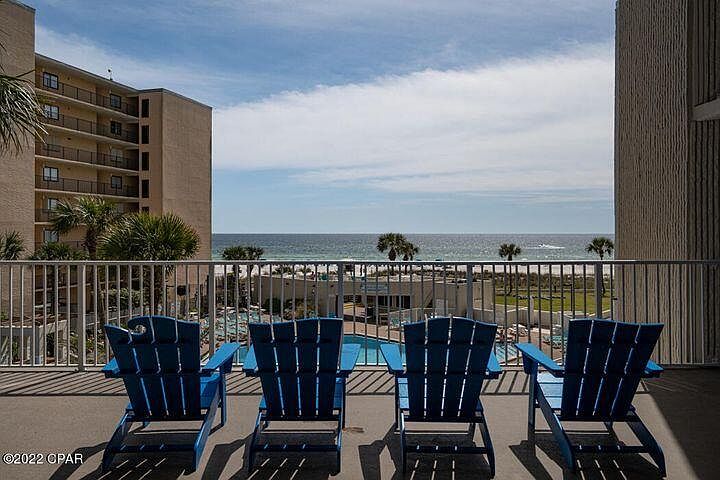 Cute, clean and updated efficiency unit located in beachfront resort with amenities. Don't miss the gorgeous sunsets from the many lookout areas! Unit comes fully furnished, including linens, dishware, glassware, pots, pans and decor. The unit has been recently painted, new backsplash, chandelier, brand new sleeper sofa (not yet used), leather reclining sofa and custom blackout blinds, towels and bedding! Top of the Gulf is located on the quieter east end of PCB and is close to restaurants, shops, golf, boating, go-carts, kiddie rides, Pier Park, Gulf World, Ripley's Believe It or Not and so much more! Great short-term or long-term rental potential! Seller will buy down 1 point towards Buyer's mortgage OR will pay $1500 towards closing costs. Call for a private showing!