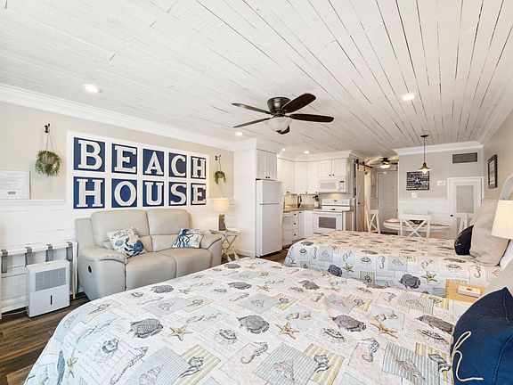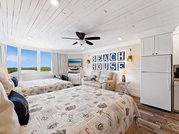 Cute, clean and updated efficiency unit located in beachfront resort with amenities. Don't miss the gorgeous sunsets from the many lookout areas! Unit comes fully furnished, including linens, dishware, glassware, pots, pans and decor. This is a studio with 2 queen beds. The unit sleeps 4 guests! This unit comes with 2 beach chairs and umbrella included with the rental. This is good through Oct 2023 only Resort Amenities: Private Beach Gulf Front Swimming Pool Kiddie Pool Outdoor Grill Area with 4 Grilling Stations Community Picnic Areas Snack Bar (open seasonally) Shuffleboard Community Corn Hole Game Room (6th floor) Fitness Center (3rd floor) Coin-operated Laundry Facilities (2nd, 4th, 6th and 8th floors) Please note that all amenities and activities are subject to seasonal operation. Upon booking, you'll receive timely communications about your trip. Access to your professionally cleaned and sanitized home is also convenient with our custom keyless locks. And, if you need anything before, during or after your stay, our local team is ready to help! Please be aware that there will be NO refunds for Wifi issues as it's not guaranteed at the beach. If reliable wifi is a must, you are welcome to bring your own internet hotspot. No Smoking/No Pets/No Events/No Firearms/No Refunds for Internet Outages/Quite Hrs 10p.m-7a.m A parking pass must be purchased by guest at time of arrival. The parking pass needs to be visible (facing out) on your vehicle's dashboard for the entirety of your stay. Parking pass and wristbands can be purchased, for $35, from the 1st floor office (9am to 5pm) or through security during high season (4pm to midnight). The $35 is a one time fee and is good for a parking pass and 4 wristbands. Valid for the entire stay. Latest we can rent this unit is 3/8/24 Utilities are $150 per month and this is in addition to the base rent. A one time clean fee is charge of $175 Credit card process fees are in addition