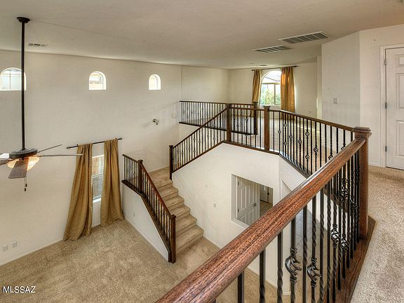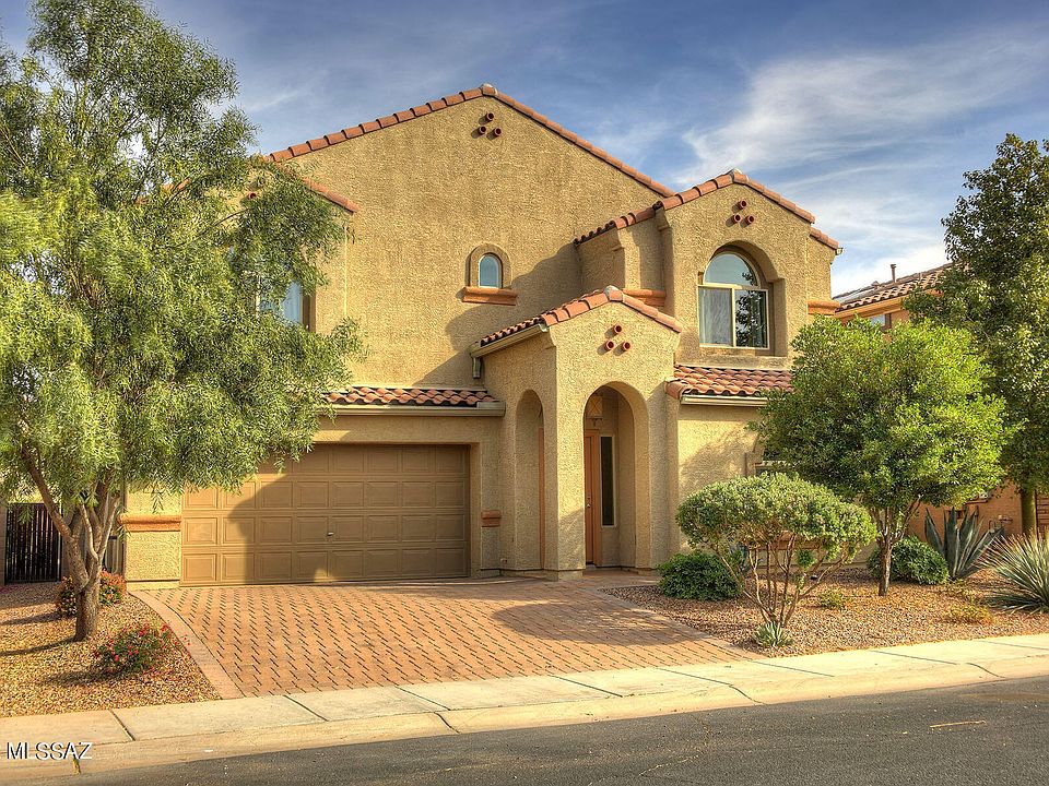 Welcome to beautiful Saguaro Bloom. 3-bed 2.5 bath 2015 built home. Cathedral ceilings soar above great room w/ clearstory windows. Banister of wrought iron & wood beckons to large 2nd story living spaces. Gourmet kitchen w/ island, water filter, stained maple cabinets & stainless appliances (brand new range) will make cooking & entertaining a joy. Fresh paint throughout, new bathroom vanity in 1/2 bath & new fixtures in upstairs bathrooms. Primary suite boasts huge walk-in closet, bathroom w/ rain shower, soaking tub & double vanity. Covered back patio & landscaped backyard with stunning Tucson Mountain views. Paver Drive. Freshly coated concrete 2 car garage w/ space to store everything. Don't miss the gorgeous community pool, spa, workout room, park, walking trails & recreation center