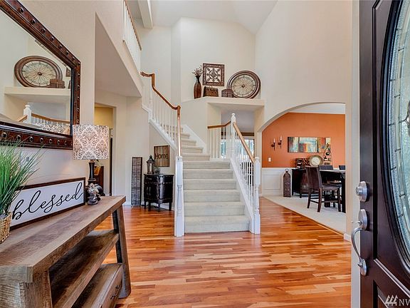 Welcome to Weller Estates! Turnkey 5 bedroom home w/main floor master in this enclave of magnificent homes w/private Lake Steilacoom access! Main floor also features an open flow, formal living & dining, office, huge family room & gorgeous kitchen complete w/ granite counters & cherry cabinets. Spa like master suite w/huge walk-in closet. Spacious 5th bedrm could easily be used as a bonus/game rm. Plus, covered deck, oversized backyard w/greenbelt behind & 3 car garage w/extra storage.
