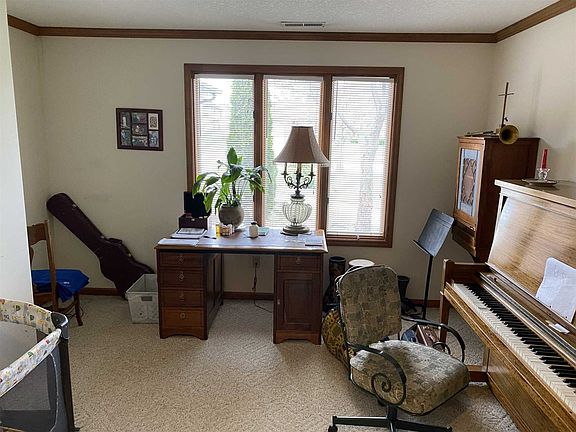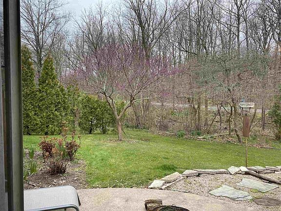 Great opportunity to be right on the Pufferbelly Trail and also backing up to a beautiful wooded area. Open Concept Ranch. 3 Bedroom plus Den and an enclosed Sun Room or 4 Seasons Room. Split Bedroom Concept with large Master and En-suite. Oak Kitchen and Six Panel Doors. Fireplace in Vaulted Family Room. Large Foyer. Den with French Doors could be 4th bedroom. Oversized 2 car garage with nice bump out. Lots of custom landscape and speciality shrubbery. Private back yard but take your bikes and walking shoes right out to the trail and access Solomon Farm Park and Wetland Trails plus extensive Pufferbelly Trail with access soon even to downtown.