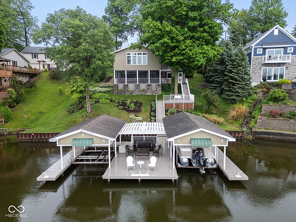 Discover lakeside living in this charming 3-bedroom, 2-bathroom home on beautiful Lake Freeman in Monticello. Featuring two cozy brick fireplaces, an inviting eat-in kitchen with a breakfast bar, and a spacious family room offering stunning lake views, this home is perfect for relaxing or entertaining. The walkout basement opens to a lovely screened-in porch-perfect for enjoying the outdoors bug-free. Enjoy the convenience of a detached 2-car garage with attic storage, plus a large pole barn for additional space. Take full advantage of lake life with a 92 ft steel seawall and two covered boat docks just steps from your door. Call your favorite realtor to schedule a private showing today!