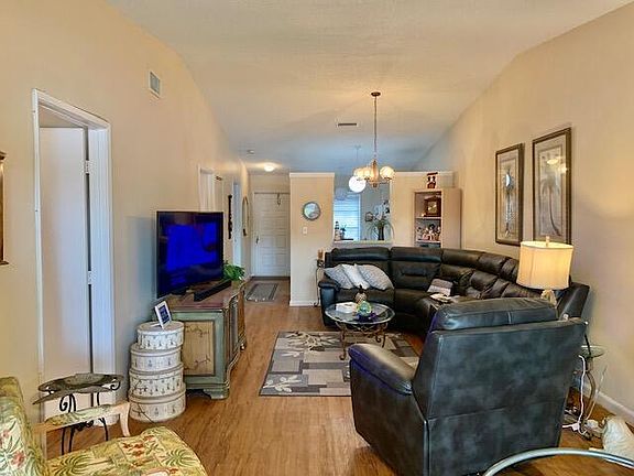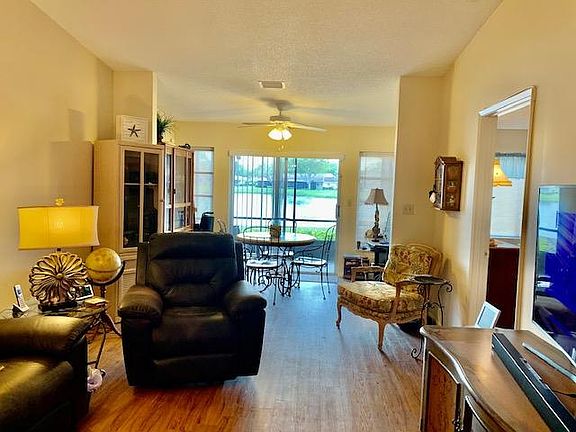 THIS IS A 55+ COMMUNITY. Feel safe and security in this gated community. Enjoy beautiful lake views from your home! This lovely villa needs a little TLC but you can't beat the location and view. New A/C 2020 and new W/H 2020. Laminate flooring throughout (no carpet!). Large living and dining area with a very nice Florida room - all overlooking the expansive lake. Master bedroom is large with a large walk-in closet. Kitchen has an eat-in area with pantry. Current tenant will be vacating at end of lease term (6/30/21). Washer/Dryer belong to tenant and will not convey. Two parking spaces at front door. Lush landscaping surrounds you. Active life includes live shows, clubs, outings, heated pools, library, fitness center.