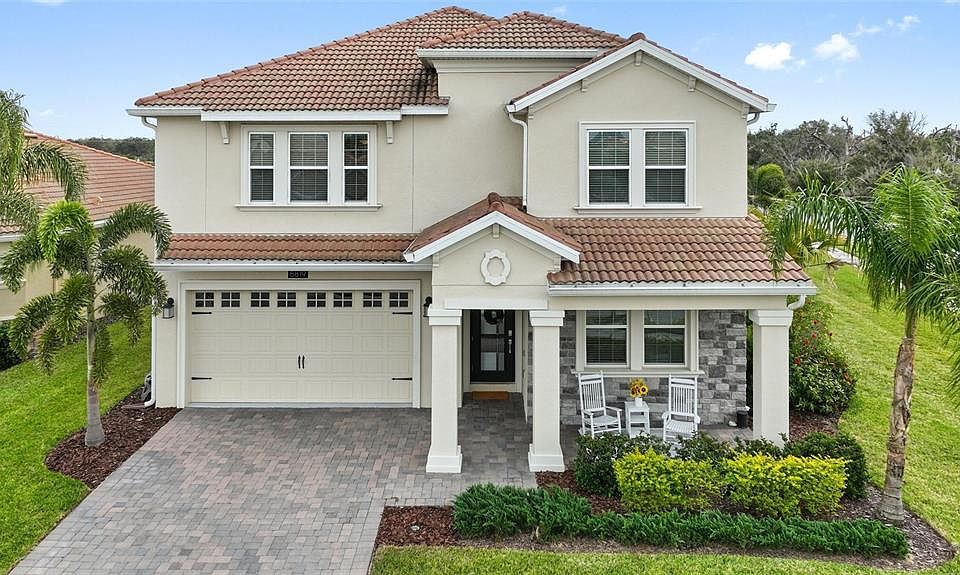 FULL GOLF AND TENNIS MEMBERSHIP INCLUDED IN HOA!!! Light and bright! This stunning 5-bedroom, 4.5-bathroom estate spans over 3,800 square feet, offering an expansive and flawless design in the exclusive ChampionsGate Country Club. Built in 2021 on a premium corner lot with breathtaking golf course frontage, this home provides the perfect blend of luxury, space, and privacy. Nestled directly on the green of Hole #6, this home boasts an extended east-facing rear lanai, providing the perfect vantage point for enjoying the spa, golf, fireworks, hot air balloons, and even shuttle and rocket launches. The open floor plan is thoughtfully designed, featuring a formal dining room, a second-floor entertainment room, and two primary suites, one upstairs and one downstairs. Every detail has been meticulously crafted, with custom cabinetry, quartz countertops, tray ceilings, and high-end stainless-steel appliances enhancing the home’s sophisticated aesthetic. A three-car garage and two laundry rooms ensure ultimate convenience, while professional landscaping elevates the property’s curb appeal. Residents of this prestigious, gated, resort-style community enjoy access to world-class amenities, including The Oasis Club, a 14,000 sq. ft. clubhouse featuring a restaurant, movie theater, fitness center, game room, tiki bar, lazy river, cabanas, and more. The Plaza, a residents-only clubhouse with a restaurant, bar, fitness center, game room, pickleball courts, and two additional pools. The Retreat Club, now open with a full waterpark, pool, and bar and grill. Additionally, the HOA covers access to all resort amenities, full golf and tennis membership, pickleball, food credit, gated entries, complete lawn care, security monitoring, cable, phone, and internet. CDD and trash are included in the taxes. Located in the heart of ChampionsGate, this home offers seamless access to world-class golf, theme parks, premier shopping, and fine dining. Golf carts are welcome on community roads, allowing you to fully embrace the luxury lifestyle this home and community provide. Don’t miss this extraordinary opportunity. Schedule your private tour today!