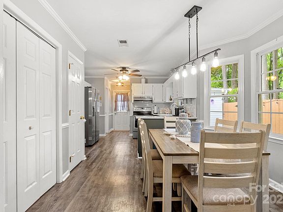 Nestled on a quiet cul-de-sac, this beautifully maintained 3-bedroom, 2.5-bath home offers 1,754 sqft of living space plus permitted 137 sqft detached studio/flex space—currently used as a bar—this property is made for both relaxing and entertaining. Updated kitchen featuring quartz counter tops, stainless steel appliances, and a charming barn door connecting to sitting room. Updated LVP flooring, light fixtures-all within the last three years. Step out back to your private fenced yard, complete with a covered deck, offering a beautiful view of the wooded area—especially stunning in the fall. Additional features- roof replaced in 2017, Nest thermostat, outside storage unit, easy access I-485.