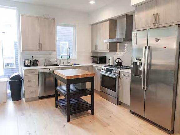 This modern 2019 build townhouse is 12 blocks north of Green Lake. Enjoy all three levels of this wonderful home. This home has A/C for those warm summer days! The kitchen has Quartz countertops and SS appliances. This end unit location allows for abundant light into the open floor plan. The rooftop deck is perfect enjoying the beautiful sunsets and grilling (built in gas line). The primary bedroom has a walk-in closet and an ensuite with dual sinks. The are two additional bedrooms, W/D and full bath. No smoking and pets on approval only.
