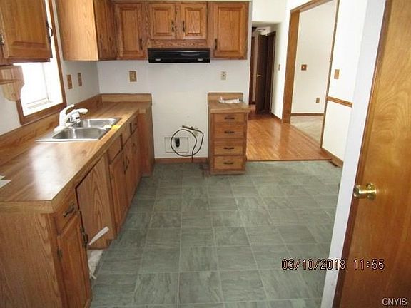 **** PRICED JUST REDUCED **** Ranch style home with full tall basement. Has 3 bedrooms and 2 full baths. Has eat in kitchen as well as formal dining room that has hardwood floors. Basement is a walk out and so much can be done here for additional living space here - think BIG family room and more. Has rear deck and front sitting porch. And lets not forget the huge 3 car detached garage that has electric service as well. Lots of potential here! Seller may consider rehab loan.