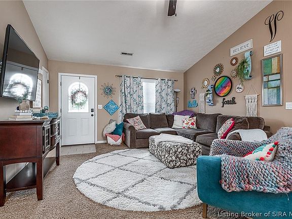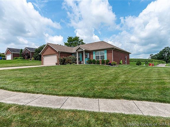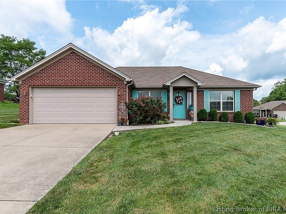 Custom built all brick adorable ranch in back of subdivision and backs up to a farmâEUR¦ Enjoy evenings on the covered back patio with stamped concrete. The inside is adorable!! Huge vaulted Great Room; nice Kitchen with a massive amount of counter space and cabinets!! Large breakfast bar, French doors to Patio and the coolest light fixtures!! The split floorplan offers the laundry room next to the King sized Main Bedroom with tray ceiling, spacious walk-in closet and double vanity private bath . The other 2 bedrooms are extra large, and the hall full bath is great sizedâEUR¦ 2 car attached garageâEUR¦ oversized lot compared to most subdivision lots and although it's walking distance to Charlestown Middle School, the location is to the back of the subdivision providing convenience yet privacy. Lots of nice upgrades like rounded corners, all brick, covered back patio with stamped concrete, extra large amount of counterspace and cabinets..