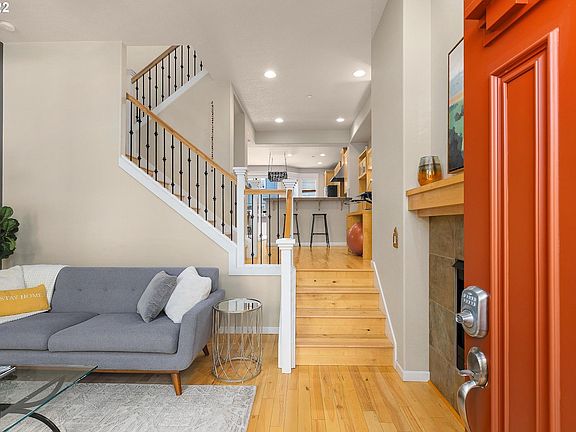 Incredibly quiet and serene, this Trolley Barn townhouse in the desirable Sellwood neighborhood has it all. Located on a cul de sac, it has an open concept main floor with high ceilings, 2 bedrooms and 2 full baths up, plus a flexible lower level that could easily function as an additional living space, 3rd bedroom or office with an exterior entrance. Deck off the main level is a place to enjoy a glass of wine or barbecue. Excellent location close to New Seasons, restaurants, shops, parks, Max.