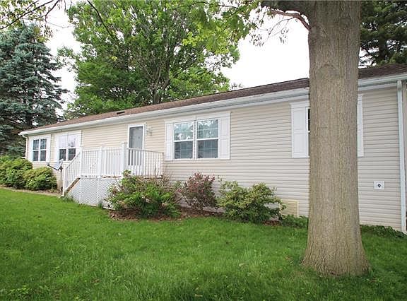 This 3 bedroom, 2 Full Bath home is move in condition! You'll love this floor plan...so homey! Spacious living room with gas fireplace, wonderful kitchen with center island, loads of cabinets for storage, pantry, built in microwave, double stainless steel sink, eat-in bright kitchen which opens to a sitting room with access to covered deck! Master bedroom with walk-in closet, spacious master bathroom with double vanity, soaking tub and separate shower. 2 Additional bedrooms, and full bathroom with crown molding. This home has plenty of shade trees which make the covered deck private to the street. Shed is great for storage. Leasehold ownership, Must be approved by Green Acres, minimum credit score 620, lot rent $773.00 month includes; water, sewer, trash, in-ground pool, tennis,basketball, volleyball, tennis courts , and clubhouse. You can be proud to call this Home! Parkland School District. Close to Costco, Target, Kohl's, etc. Close to PA Turnpike, 22, 100, 78, and 309.