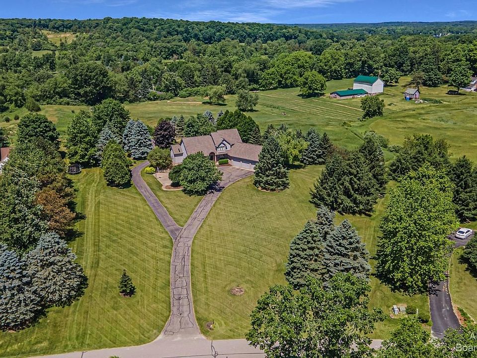 Looking for peace & quiet in a county setting that's close to town? Look no further than this Webster Hills beauty! Located just 5 mins from Hudson Mills or the B2B Trail, this one has it all! This 5 bed/4 full bath home features a 1st floor primary with cathedral ceilings, walk-in closet with organizers, private deck, large bathroom with a huge shower, spa tub, granite countertop. A second bedroom on the entry level could be an in-law suite or office. The open kitchen with large island has stainless steel appliances, large pantry, granite countertops & access to a great 3 season room with a gas stove. Three additional bedrooms upstairs share the hall bath. The spacious walkout finished basement has a full bathroom and can be used for additional living space, 2nd office, playroom, theater, workout room..the possibilities are endless! The additional 2 car garage/workshop with loft has a 100 amp panel and is neatly tucked into the pines. New roof, flooring throughout & water softener in 2018, new exterior paint & gutters in 2020. New laundry room floor & bathroom paint (both entry baths & upstairs bath) 2022. Close to downtown Dexter & 20 mins from Ann Arbor. Don't miss this one!