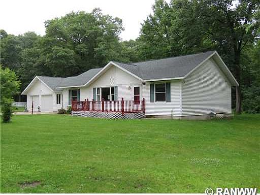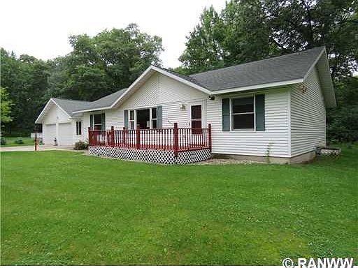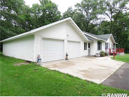 One Owner home on private cul-de-sac location. 3 bedrooms on one level with master suite on one end of home w/walk-in closet. Well built Open Concept. Eat-in kitchen. 1st floor laundry. Private relaxing back yard deck along with a deck on front of home. 2 heating systems installed. Tons of storage! Close to Cameron & Rice Lake area. Great Value! Attached 24x36 oversized garage with a workshop.