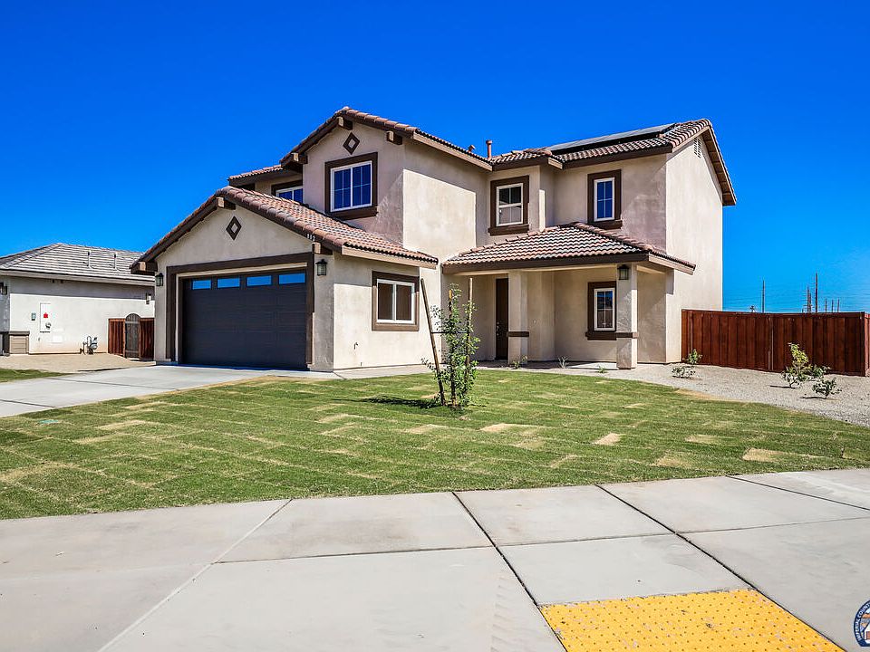 Welcome to your dream home in the charming Sedona community of Brawley, CA. This stunning 2-story home boasts 4 bedrooms, including a spacious loft, and 3 full bathrooms spread over a generous 2386 sqft. As you enter through the front door, you will be greeted by the bright and airy open concept living space with soaring 10ft ceilings and vaulted ceilings in select areas.The modern kitchen is truly a chef's delight with its oversized island, perfect for meal prep or gathering around with family and friends. Equipped with stainless steel appliances, quartz countertops, and luxury vinyl plank flooring throughout the main level, this kitchen is both stylish and functional.Need some extra privacy? Look no further than the first-floor bedroom complete with a full bathroom ideal for guests or as an office space. The second floor features three more spacious bedrooms, including an impressive master suite complete with dual vanities in the en-suite bathroom and walk-in closets for all your storage needs.But that's not all this home sits on an oversized cul-de-sac lot with RV access AND a fenced yard! Perfect for outdoor entertaining or letting your furry friends run free. And did we mention it comes equipped with solar panels to help save on energy costs? Plus, enjoy endless hot water thanks to the tankless water heater while feeling secure knowing there is a fire sprinkler system installed.Located in one of Brawley's most desirable communities Sedona this home is also eligible for dream home loans making it even easier to make this house your forever home. Don't wait any longer - schedule a showing today before someone else snatches up this amazing opportunity!