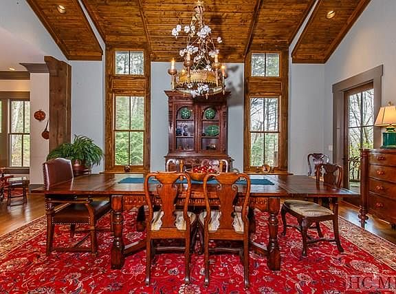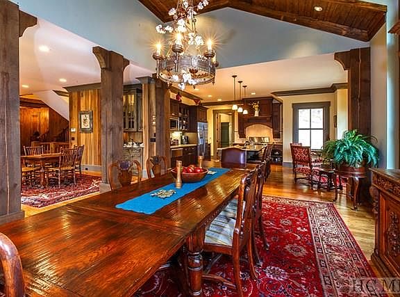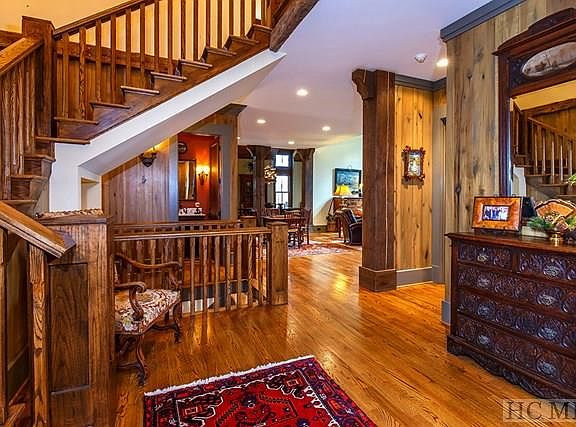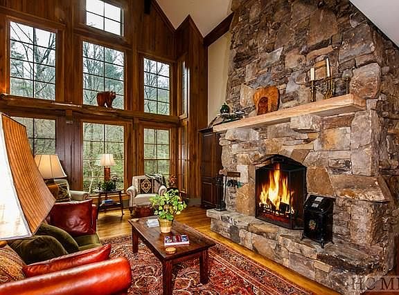 Absolutely spectacular 4 bedroom, 3 full bath, 2 half bath move-in ready mountain lodge on beautiful Mill Creek and the golf course in Lake Toxaway Estates. This hand crafted home features 4 fireplaces, hardwood floors, chef's kitchen with stainless appliances, two bedrooms on the main floor, covered porch with breathtaking view of Mill Creek. Extensive stonework and fire pit overlooking the bold, rushing stream. Extensive additional space below could be finished to make this home even more spacious.