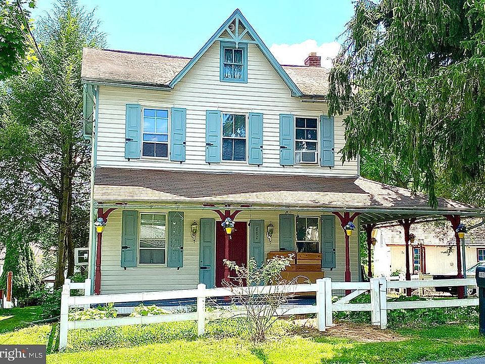 Welcome to 882 Fritztown Rd., Spring Township. A farmhouse style three bedroom, two bath home situated on over half an acre, this property offers the dual attributes of country living while being in close proximity to everyday necessities. As you arrive at the home, you first notice the tree-shaded yard surrounded by a white rail fence, then the inviting wraparound porch for comfortable warm weather lounging. The expansive back yard is the perfect place for recreation and entertaining. The interior of the home offers some interesting surprises. A large country-style eat-in kitchen featuring cherry cabinets, Jenn-Air cook top, corner wall oven, and open beams. The large living room (23x13) sports some very fancy ceiling plaster work, crown molding, and raised panels below the chair rail. As you ascend the stairs to the second floor, be prepared to be greeted by the glow of a large stained glass hallway window. Three cozy bedrooms and a unique hall bath complete the second floor. The partially finished basement includes a large tile floored laundry room complete with utility tub and two cedar closets and a beautifully finished full bath with shower stall. Rounding out the property is a detached, two-car garage, storage shed, and deck area with pergola. Upgrades & improvements include the following: well pump and piping replaced, 2019; furnace repairs and upgrades, 2020; new shut-off valves on all plumbing fixtures, 2010; water softener, 2011; fencing - front yard and between properties, 2016; electrical system upgrade, 2010; new garage door opener, 2021; new garage outlets and lights, 2021; new kitchen cook-top, 2020; removal of trees and landscaping, on going. Schedule your visit today and be prepared to be charmed.